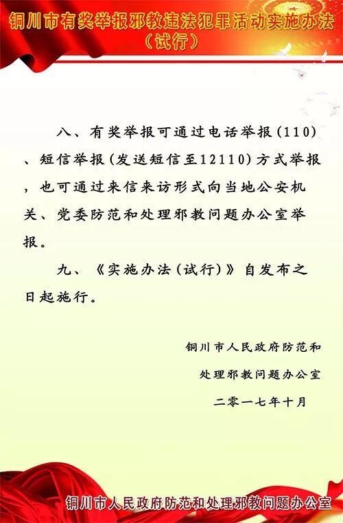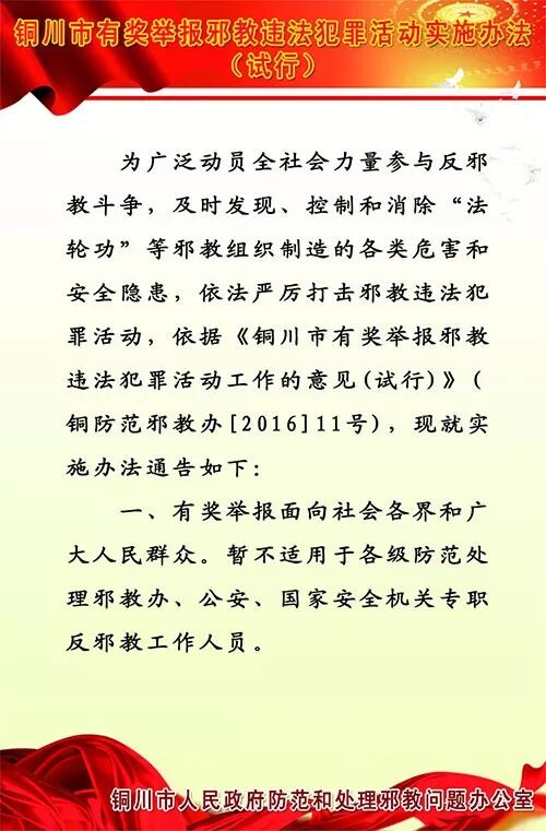 图说:铜川市有奖举报邪教违法犯罪活动实施办法(试行)